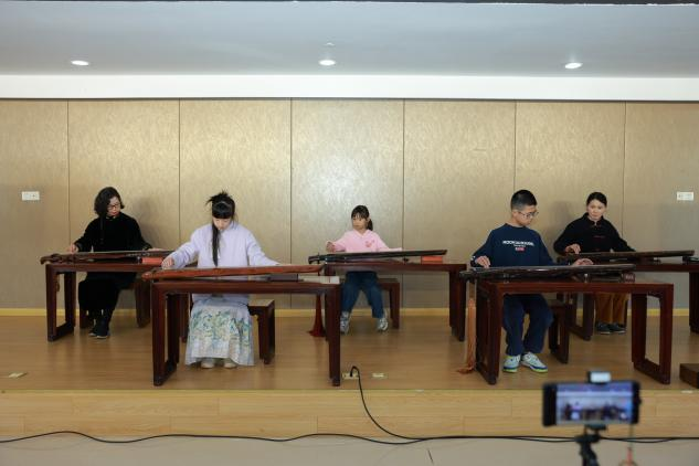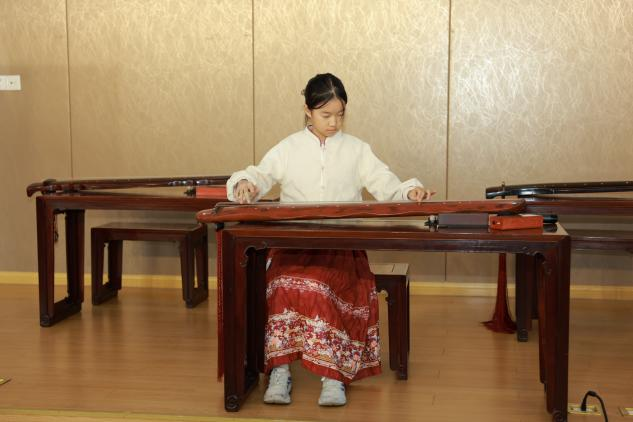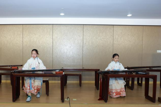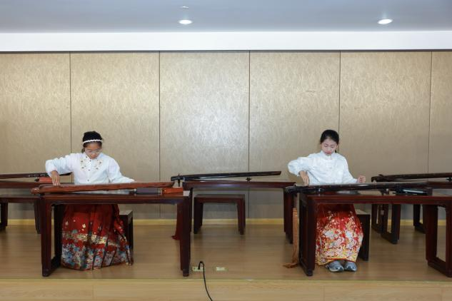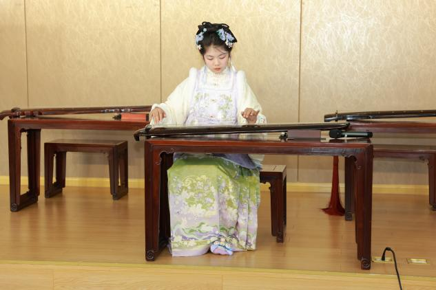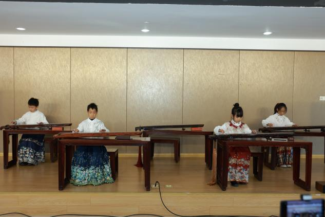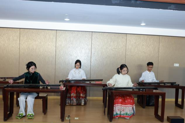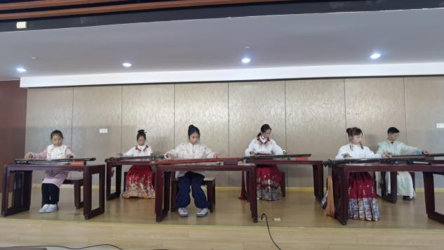 闵栀夏、费茉恬姐妹俩的古琴重奏《招隐》,在蒋老师的鼓声伴奏下,更添一份山林隐逸之气。最后,展演在李沐涵、孟雨昕等学员合奏的《春风》中落下帷幕,明快的旋律仿佛带来了盎然的春意,也为本次成果展画上了一个圆满的句号。