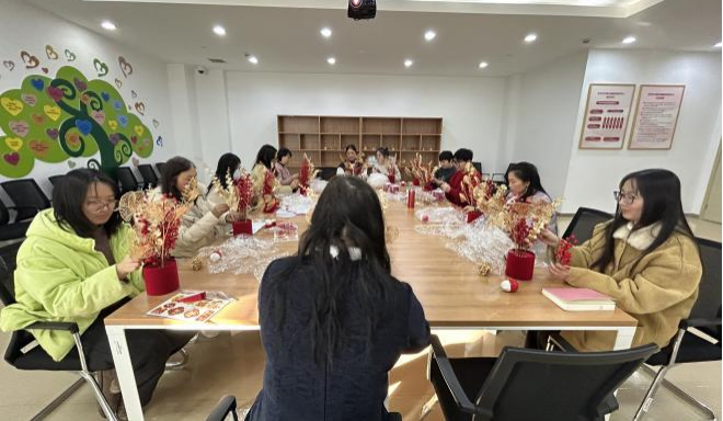 总结交流会后,苏州巾帼公益园还组织了一场充满喜庆年味的年宵花手工制作活动,在做手工的同时还围绕相关活动开展的经验、资源需求等内容进行了交流探讨,有效增进了彼此了解。