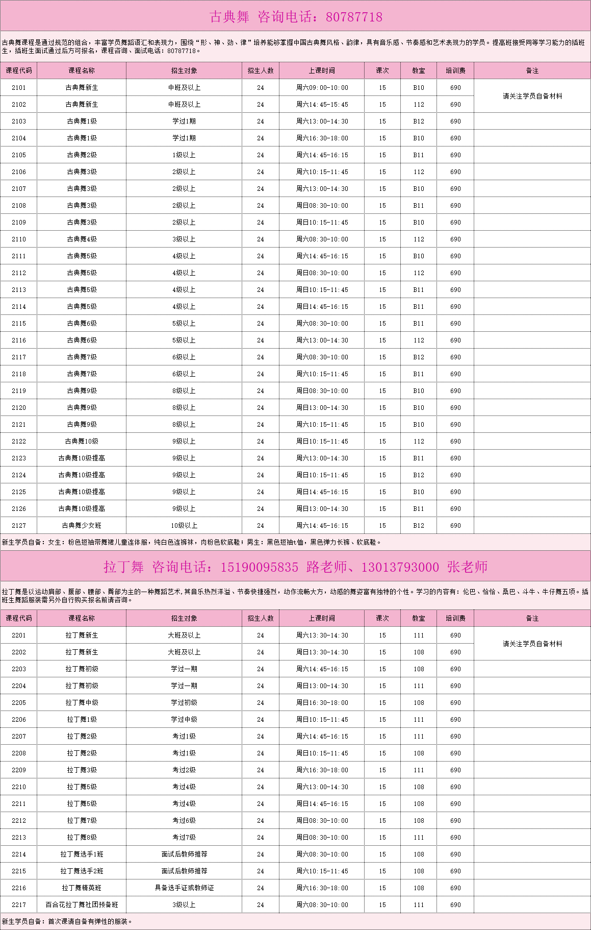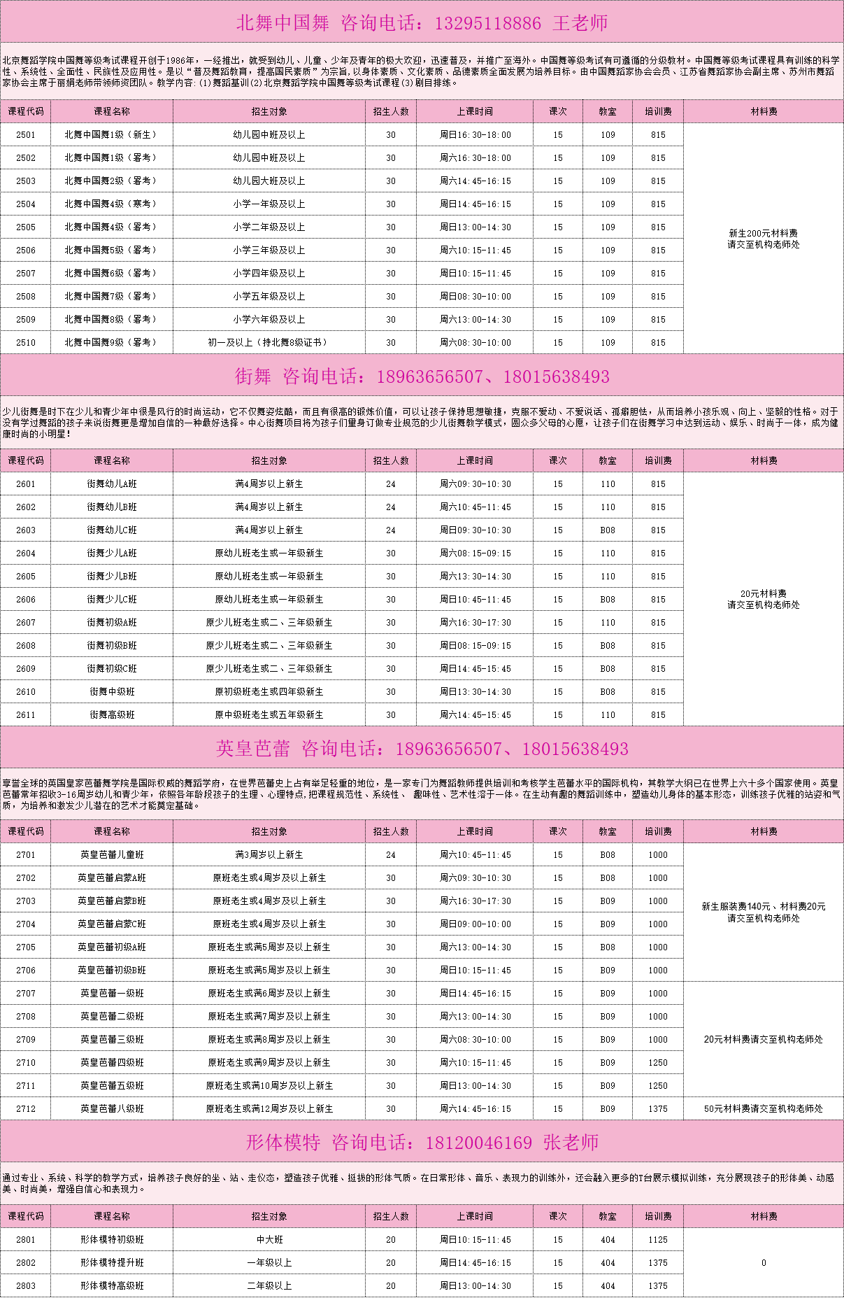 2026春季舞蹈、形体模特课程(本部)