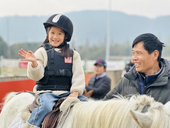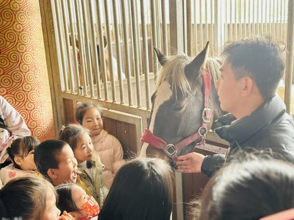 随后,在专业教练的指导下,孩子们体验了马术骑乘,享受了骑马的乐趣,并在这一过程中锻炼了身体协调性和平衡感。