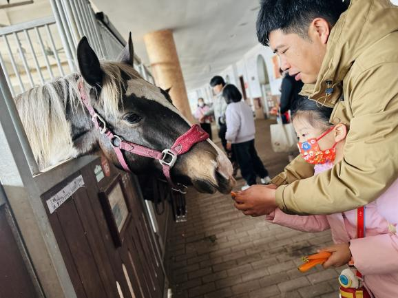接着,孩子们近距离观察小马驹,通过喂食胡萝卜与小马亲密互动,这一环节不仅激发了孩子们对动物的喜爱,也培养了他们的观察力和责任感。