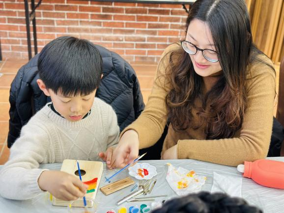 下午的手工课程环节,亲子们共同参与了拇指琴彩绘,共同创作属于他们的艺术品,不仅培养了孩子们的创造力和动手能力,也加深了亲子间的情感联系。