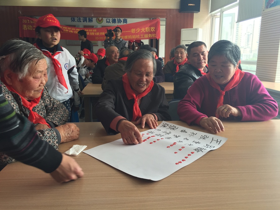 活动当天,孩子们除了陪伴老人,还为社区孤寡老们提供一些力所能及的帮助,在社区工作人员的协助下,孩子们成功联系到一对年过九旬的老夫妻,同学们带着提前做好的手工太阳花前去探望陪着他们聊天说话,帮助他们做一些简单的家务活。